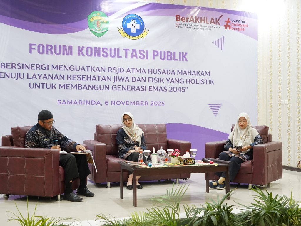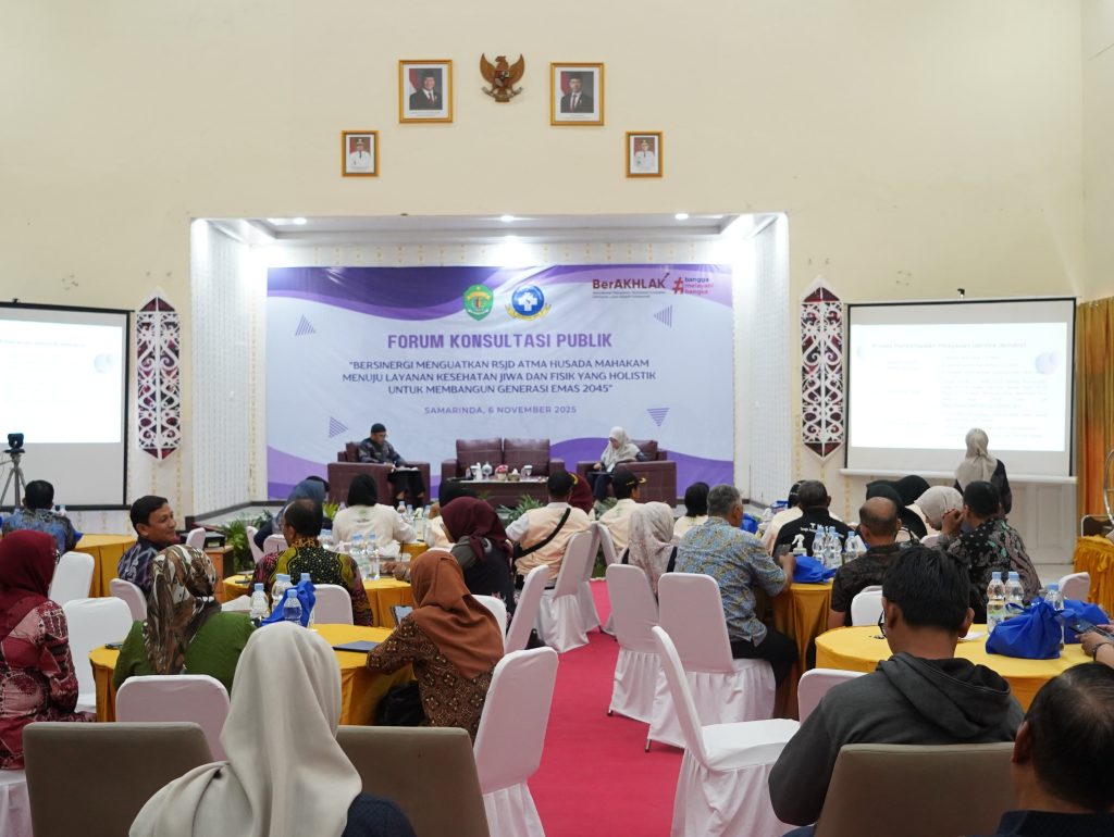 RSJD Atma Husada Mahakam melaksanakan Forum Konsultasi Publik (FKP) bertema “Bersinergi Menguatkan RSJD Atma Husada Mahakam Menuju Layanan Kesehatan Jiwa dan Fisik yang Holistik untuk Membangun Generasi Emas 2045”, Kamis (6/11/2025) di Aula Bahempas RSJD Atma Husada Mahakam.