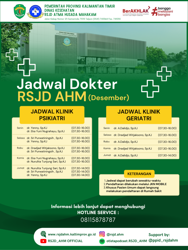 PEMBERITAHUANPelayanan Rawat Jalan RSJD AHMDilakukan Senin s/d Jumat