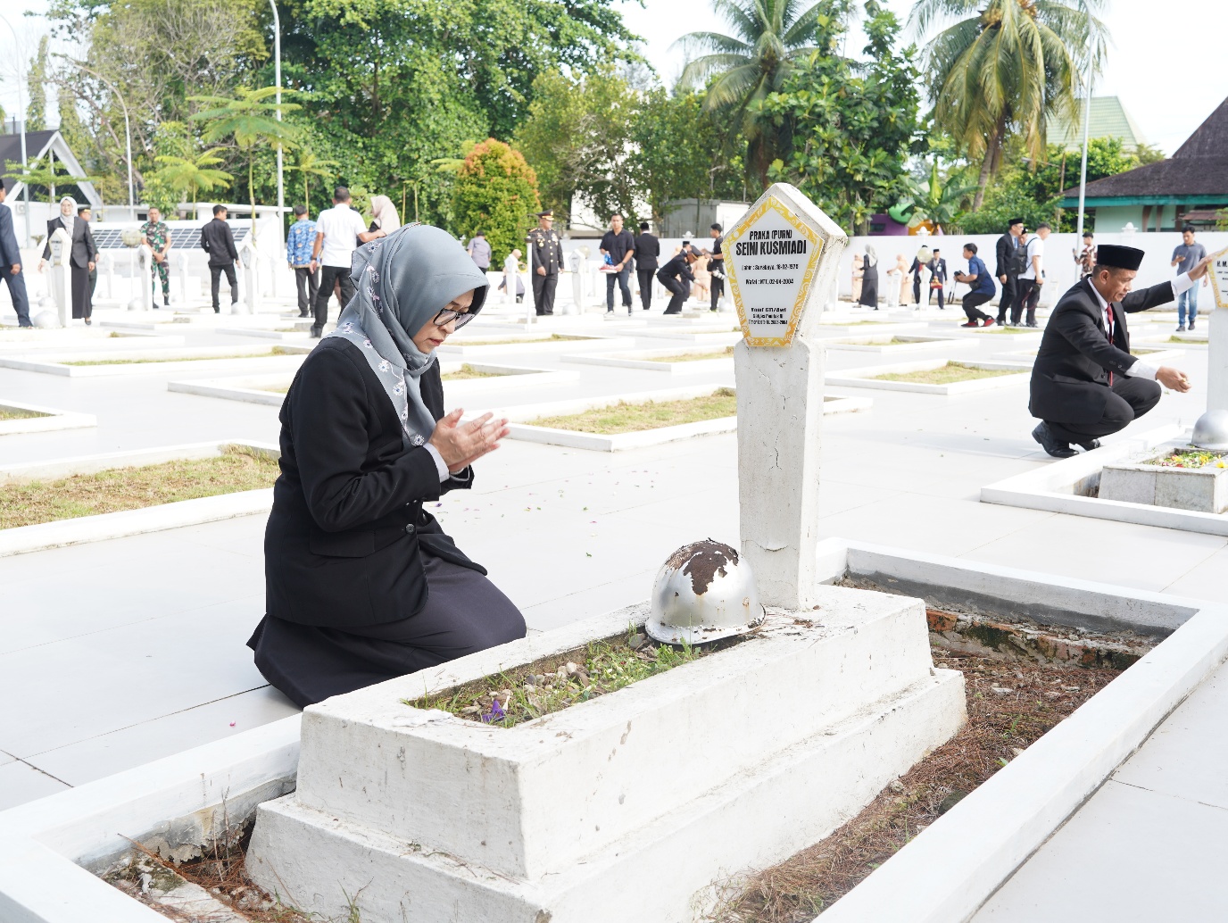 Usai upacara, dr. Indah Puspitasari, MARS bersama para peserta kegiatan turut melakukan tabur bunga dan doa di makam para pahlawan sebagai bentuk penghormatan dan penghargaan atas jasa serta pengorbanan para pejuang bangsa.